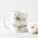 Festive Snowflake Joyeux Script de Noël Café Mug. Idéal pour passer des vacances de Noël. Avec de beaux flocons de neige sur un arrière - plan blanc et un joyeux script de Noël.
