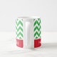 Personnalisez ce café de Noël festif ou une tasse de cacao chaud avec un prénom ou un autre texte personnalisé. Le design se compose d'un motif moderne aux rayures de zigzag de chevron. Couleurs classiques rouges, vertes et blanches.