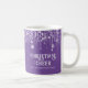 Des lampes à cordes violettes et blanches scintillent les tasses de Noël avec un design ludique mignon et fantaisiste avec nom de famille pour une saison de Fêtes festives.