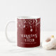 Des lampes à cordes rouges et blanches scintillent les tasses de Noël avec un joli design fantaisiste avec le nom de famille pour une saison de Fêtes festives.