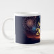 Célébrez l'excitation du Nouvel An avec cette tasse vibrante! Doté d'une explosion de feux d'artifice colorés dans les tons rouge, or et bleu contre un arrière - plan noir épuré, associé à la phrase "Cheers to a Sparkling New Year !" dans un élégant script en or. Parfait pour commencer l'année avec un air festif.