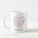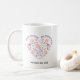 Faites-vous plaisir avec cette jolie tasse à café au coeur floral. Décorée d’un coeur floral unique, avec de charmants oiseaux dans une palette de couleurs rose, pêche et violet, cette tasse ajoutera une touche de fantaisie à la routine matinale de votre mère. Ce qui rend cette tasse unique sont les trois zones de texte personnalisables qui vous permettent de la personnaliser avec des sentiments comme "Meilleure maman du monde", "Meilleurs amis pour toujours" et "Fête des mères" avec l'année en cours. Créez un cadeau significatif pour express votre amour et votre appréciation pour votre mère.