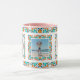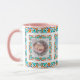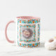 Fête des mères sur mesure maman maman maman maman maman photo Tea café Mug. Dans de jolies couleurs de rose, d'orange, de bleu et de vert ; dans un motif géométrique moderne, maximaliste et multicolore audacieux. Pour de délicieuses boissons et un chocolat chaud gai pour célébrer la fête des mères. Changez les trois photos en photos pour célébrer des souvenirs de famille joyeux. Achetez comme un petit cadeau de décoration dopamine garde de la boisson, de la vaisselle pour elle, mères, épouses ou grand-mères.