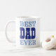 "Best Dad Ever" lit la citation de part et d'autre de cette typographie tasse de café dans les tons bleus. Un cadeau parfait pour votre père en Fête des pères ! Conçu par l'artiste ©Susan Coffey.