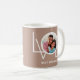 Cette Mug photo Best Dad Ever est décorée du mot LOVE en blanc sur un arrière - plan beige. Facilement personnalisable avec votre photo. Fait un cadeau de Fête des pères spécial.
