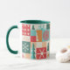 Le Motif Coffee Mug Festive Festive de Noël Géométrique moderne présente un motif géométrique moderne d'icônes festives telles que les arbres de Noël et les flocons de neige. Conçu par ©2024 Evco Studio www.zazzle.com/store/evcostudio