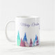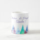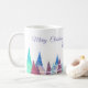 Mug personnalisé pour les fêtes d'hiver avec un dessin de montagnes cubiques.