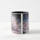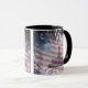 Savourez vos boissons chaudes dans cette tasse patriotique arborant le drapeau 13 étoiles d'origine et la salle de l'Indépendance sur un arrière - plan de feux d'artifice.