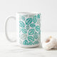 Tasse à café en céramique avec une jolie impression feuille turquoise/aqua. Customisez cet objet ou achetez tel quel. Image stock