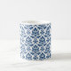Mug Feuille Damask Pattern bleu foncé sur blanc