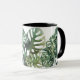Cette chic tasse tropicale présente un corps blanc élégant avec une poignée noire, l'intérieur et la jante, Montrant un motif vibrant de feuilles de monstère vert luxuriant. Ajoute une touche d'élégance tropicale à votre quotidien.