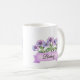 Fêtez un anniversaire de février avec cette tasse à fleurs de violet personnalisée. Ajoutez un nom personnalisé à la bannière florale pour une idée cadeau unique et sincère pour les petites amies, les mamans ou les meilleurs amis.