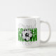 Mug avec "Proud Soccer Mom" sur le devant en lettres vertes ; personnalisé sur le dos avec le nom de la mère ou de l'enfant.