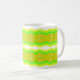 Contenant à boire de la boisson de café de la tasse de café imprimé avec Green And Yellow Figure Eight Ribbon Motif rétro pop art ruban style bonbon design géométrique abstrait motif illustration originale par TheFabricSeal impression sur demande shop à Zazzle.com #ZazzleMade https://www.zazzle.com/store/thefabricseal TheFabricSeal ©️ original. Donnez une tasse sur commande de Zazzle à quelqu'un de spécial, ou offrez-vous un design qui vous apporte la joie. Disponible en micro-ondes et lave-vaisselle de 11 ou 15 onces. Fabriquée en céramique solide. Art graphique numérique moderne et géométrique abstrait dessiné et imprimé artistiquement pour votre maison et accessoires de vie, décoration de maison, défilé de mode, accessoires électroniques modernes et tons de cadeaux donnant des idées. Ce dessin amusant et gai a été inspiré par l'aspect de bonbons durs ruban classique gâteries populaires pendant des siècles et des générations. Représentation de la nature à son point le plus frais du renouvellement de la verdure du printemps et de l'été. Belle palette de couleurs mélangée avec des verts et des jaunes, y compris le jaune citron, le beurre jaune crémeux, la limonade, la limeade, l'herbe citron, vert néon foncé, vert clair, vert électrique, chartreuse, tarte à la citron, soupe de pois fendu, guacamole, citron, gecko et vert algues, le tout recouvert d'un arrière - plan blanc cool.