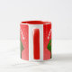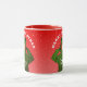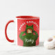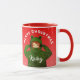 Mignonne fille avec Sweat - shirt à capuche de grenouille verte Dessin de la Mug de Noël. Un joli dessin d'une fille portant un sweat - shirt à capuche de grenouille verte et un nom personnalisé. Amusant, design de vacances avec des flocons de neige sur un arrière - plan rouge pour une fille. Ajoutez votre nom et votre texte.