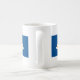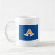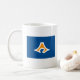A mug with a design with the flag of Shizuoka Prefecture in Japan (静岡県, Shizuoka-ken), a blue flag with a white and yellow symbol
