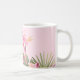 Un joli flamant rose exotique avec couronne et fleurs sur arrière - plan rose clair