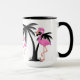 Flamant rose rose marchant par le palmier noir sur une grande tasse de café de TwoToned. Nous appelons ceci ceci la tasse d'amusement pourquoi ? parce qu'elle est juste !