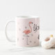 Design inspiré du milieu du siècle avec une touche rétro avec un flamant rose et des étoiles sur un arrière - plan rose pâle. Un design personnalisable pour personnaliser avec votre propre texte, images et idées. Image d'art numérique originale créée par Jess Perry sur QuirkyChic Retro.