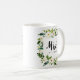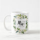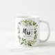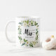 Après le mariage, montrez votre nouveau nom de famille avec ce drôle LE NOUVEAU MRS. Typographie MUG avec un cadre floral de roses blanches et feuilles Coordonné à la collection de mariages en fleurs blanches et accessoires.