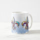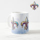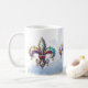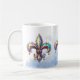 Choix de styles de tasse incluant le verre. Couleur intérieure personnalisable pour d'autres styles. Fleur de Lis avec pierre décorative au centre sur un nuage bleu transparent.
