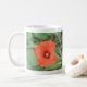 Cette belle tasse présente une photo détaillée d'une jolie fleur de pavot sauvage. Cette belle fleur rouge vif se distingue par son arrière - plan de feuillage vert. La photo a été prise en utilisant la macro photographie pour une image détaillée. Le design est montré sur une mug blanche de base, mais est également disponible sur une gamme d'autres styles et couleurs de mugs.