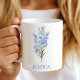 Les mugs à café personnalisés sont des cadeaux fantastiques pour vous-même ou pour les autres ! La fleur du mois fait un excellent cadeau d'anniversaire ou pour les demoiselles d'honneur. La fleur de juillet est le magnifique delphinium bleu. Pour personnaliser votre mug, cliquez simplement sur "Personnaliser ce design", entrez le nom, et Zazzle se chargera du reste.