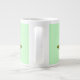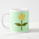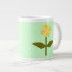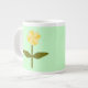 Cette énorme tasse présente une image numérique d'une marguerite avec une tige verte avec deux feuilles verts dessus et des pétales de couleur claire et jaune foncé. C'est un design simple, mais beau. L'arrière - plan est de couleur vert pâle.