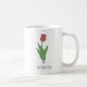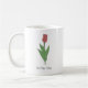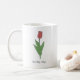 Une tasse avec une illustration de fleur de tulipe rouge botanique dans les couleurs pastel et un texte personnalisable en bas : un joli cadeau pour une fille qui aime les fleurs! La tulipe est la fleur de naissance d'avril, la fleur d'Aries et est une signification symbolique de l'amour parfait et profond.
