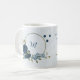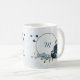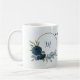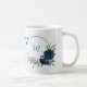 Magnifique tasse à café romantique avec des fleurs bleu marine et bleu poussiéreux clair et quelques feuilles jolies .