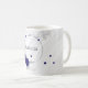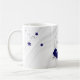 Belles fleurs bleu royal et feuilles gris argent sur mug à café à fond en marbre