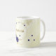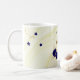 Belles fleurs bleu royal et feuilles dorées sur un mug à café à fond de marbre