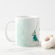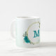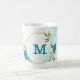 Magnifique tasse à café avec des fleurs turquoise et bleu clair et des feuilles vertes