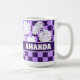 Tombez amoureux de la saison automnale avec notre belle tasse personnalisée et festive. Le design présente notre belle feuillage d'automne dessiné à la main et des fleurs d'automne avec damier rétro. Les feuilles d'automne coulent autour de la tasse comme si elles soufflent dans la brise d'automne. Personnalisez avec votre nom.