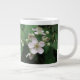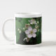 Cette magnifique tasse présente une photo d'une vigne de mûre recouverte de fleurs. Ces belles fleurs ont l'air blanches de loin mais si vous regardez de près les pétales ont une teinte rose pâle.