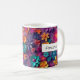 Une tasse avec un motif numérique 3d cool. Fleurs lumineuses et colorées au style cool qui ressemble à des découpes en papier. Design amusant et fantaisiste.