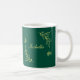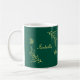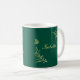 Tasse à café simple unique avec des fleurs dorées romantiques et élégantes et des papillons sur fond vert émeraude