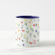 Cette tasse est conçue avec une aquarelle simple et moderne motif de petits fleurs sauvages et papillons. Les papillons sont bleus, rouges et oranges. Les fleurs et les feuilles sont verts, rouges, bleus et jaunes.