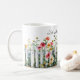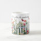 De belles fleurs d'aquarelle le long d'une clôture bordent cette tasse. Pour la décoration saisonnière de la maison, les tasses sont un changement facile de l'hiver douillet à une esthétique printanière colorée. L'IA a aidé graphisme acheté avec licence commerciale. Oeuvre : MokoDE