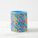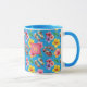 Cette tasse à café tropicale est composée d'un motif de fleurs d'hibiscus jaunes, roses et bleus, mélangés à des tongs fleuris. Ce joli motif de plage rappelle Hawaï, le Pacifique Sud, la Floride et d'autres climats tropicaux. Il est également fixé contre une couleur bleu turquoise profond clair, qui correspond à la poignée et les options intérieures indiquées pour cette tasse. D'autres options de verrerie, comme des poignées simples, des tasses gelées et même des steins, sont disponibles. Votre premier monogramme apparaît en jaune sur un bloc de rose à l'avant et à l'arrière - ou à gauche et à droite - assurez-vous de taper le vôtre lorsque vous commandez.