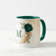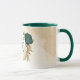 Mug fleurs vert émeraude et or beige