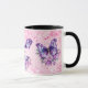 Arrière - plan rose ceint décoré de papillons violets, fleurs roses et violettes, confettis roses. Personnalisez et ajoutez votre nom.