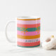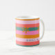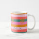 Cosy Christmas Bright Stripe et snowflake nom personnalisé tasse à café. Un cadeau de vacances parfait pour le thé, le café ou le chocolat chaud les nuits froides d'hiver. Préparez-vous à fêter la saison en beauté avec cette tasse rayée amusante et joyeuse aux couleurs de Noël inattendues : rose, vert turquoise, jaune doré et corail. Une motif rayée moderne et colorée ajoute un peu de cachet supplémentaire. Fait un cadeau de Noël parfait.