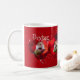 Hamster tasse avec quatre de vos petites photos préférées disposées sur une tasse de café rouge remplie de flocons de neige. Tout nouveau ce Noël !