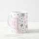 La tasse de café hiver-orientée mignonne comportant les flocons de neige, les étoiles de parties scintillantes de faux et les confettis roses et argentés arrose. Personnalisez la tasse avec votre initiale !