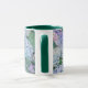 Cette élégante tasse à café fleurie est un cadeau unique pour les occasions spéciales. Ce modèle de design présente un arrière - plan de magnifiques fleurs bleues d'hydrangée avec un nom monogrammé en caractères blancs accentué par les fleurs. Conçu par l'artiste mondialement connu Tim Coffey.