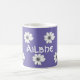 Modèle floral Purple nom personnalisé Latte Mug. Ajoutez le nom souhaité. Un beau cadeau pour un ami ou un parent ou même pour vous-même. Autres couleurs et styles disponibles. Idéal comme cadeau d'anniversaire ou pour chaque occasion. Le nom peut aussi être changé en maman, soeur, etc. Cliquez sur Personnaliser ce modèle "Détails" pour personnaliser davantage.