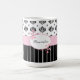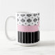 Une tasse à la mode avec un motif noir et blanc chic de damassé sur les filets supérieurs et impertinents sur le fond, divisé par un cadre floral rose girly. Personnalisez en ajoutant votre nom. Perfectionnez le présent pour la femme élégante et à la mode qui aime des rayures et un motif de damassé de damassé.