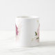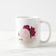 Magnifique tasse à café représentant des fleurs roses et magenta et des feuilles vertes