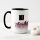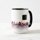 Élégant violet doré Floral noir Monogramme Mug. Des fleurs florissantes dans des détails rouge, violet et doré et des feuilles apparaissent d'un dégradé doux sur la partie amante tout autour de cette tasse. Un carré imprimé noir avec un cadre doré, votre lettre monogramme et votre nom complet personnalisable pour vous des deux côtés. Une tasse féminine et élégante, un joli ajout à votre espace bureau. Sirotez dans le style. Voir les produits assortis avec le même thème de conception dans la collection. Mélanger et apparier ou utiliser seul.